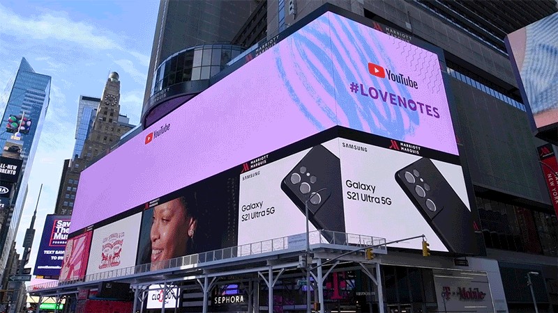 We brought #LoveNotes to life by designing dynamic DOOH placements seen from the streets of NYC, LA, and London. In order to create an integrated, scalable experience across all touchpoints, we put together a creative toolkit for YouTube’s cross-functional teams to promote #LoveNotes via social, blog posts, and video channels for the duration of the campaign.